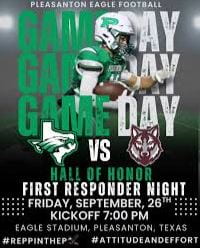 The Eagles are off to a great start this season, and district play kicks off on September 12th against the Carrizo Lady Cats Volleyball team. Good luck to the Pleasanton Eagle Volleyball team this season. Let’s rally and support our incredible ladies! Pride, pride!